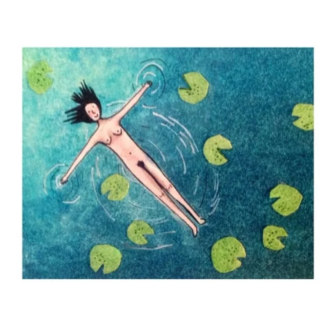 MG: I love to painting small moments, vignettes of times that I yearn or experiences that I fondly remember. I love to paint people swimming in rivers and alpine lakes, or diving into the saline waters of the Channel. I love to paint people naked, dancing under white moonlight, or collecting edible flora from the hedgerows. My childhood spent in the countryside in England has inspired me a lot too, with its knee-high soft grasses and papery wildflowers, and its layers of violet bluebells and wild garlic that give vibrance to the forest floor. All of these things emerge in my artwork, it’s often a struggle to focus on just the one moment that I am trying to capture.